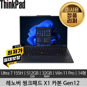레노버 씽크패드 ThinkPad X1 Carbon 12th Gen Ultra7 155H 32GB 512GB SSD 2.8K 400nits Win11 Pro 미사용 리퍼 노트북